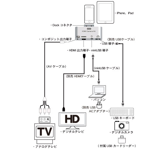 قطعة جميلة للآيفون والآيباد يوفرها موقع ياباني تستطيع من خلالها توصيل الآيفون بالتلفزيون أو بكيبورد خارجي أو تستخدم معه ميموري الكاميرات