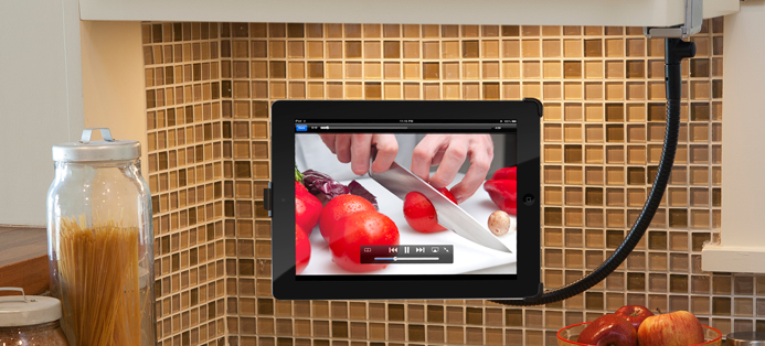 اذا كنت تحب العمل على الآيباد بجانب الكمبيوتر أو زوجتك تستعين بالآيباد في المطبخ أو تريد تثبيت الآيباد على سريرك وتستخدمه وات منسدح :) فهذه القاعده ممتازة تستطيع الحصول عليها بسعر 80$ : hoverbar .