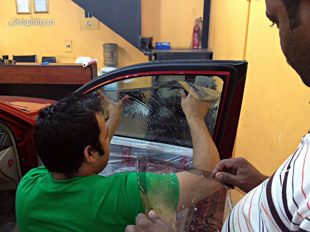 التركيب نوعا ما يشبه تركيب التغييم العادي لكن بشكل أدق بحيث يجب أن تكون السياره داخل كراج بعيدا عن اي تيار هوائي تجنبا للتراب والوسخ