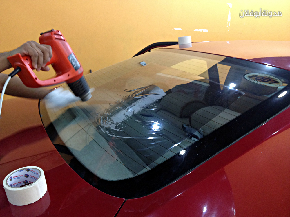 “ثم يتم فتح التغييم ووضعه على الزجاج الخلفي وتمديده بالمسدس الحراري”