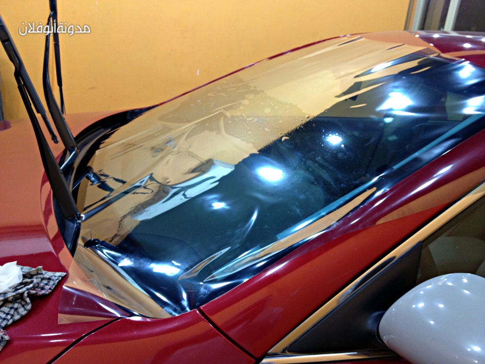 خطوات التركيب بداية يتم حماية ديكور السياره حتى لا يتأثر بالماء والشامبو الذي يتم رشه على الزجاج ويتم مسحه ويكرر الخطوة ثلاث مرات حتى يتأكد من نظافتة الزجاج