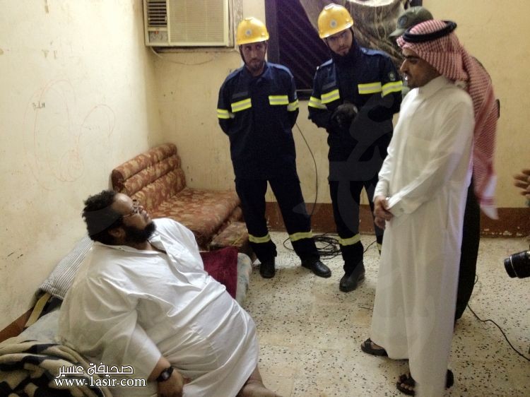 15 رجلا من الهلال الأحمر والدفاع المدني استخدموا ليتمكنوا من نقل هتان الشهري ذو الـ 37 عاما الى المستشفى