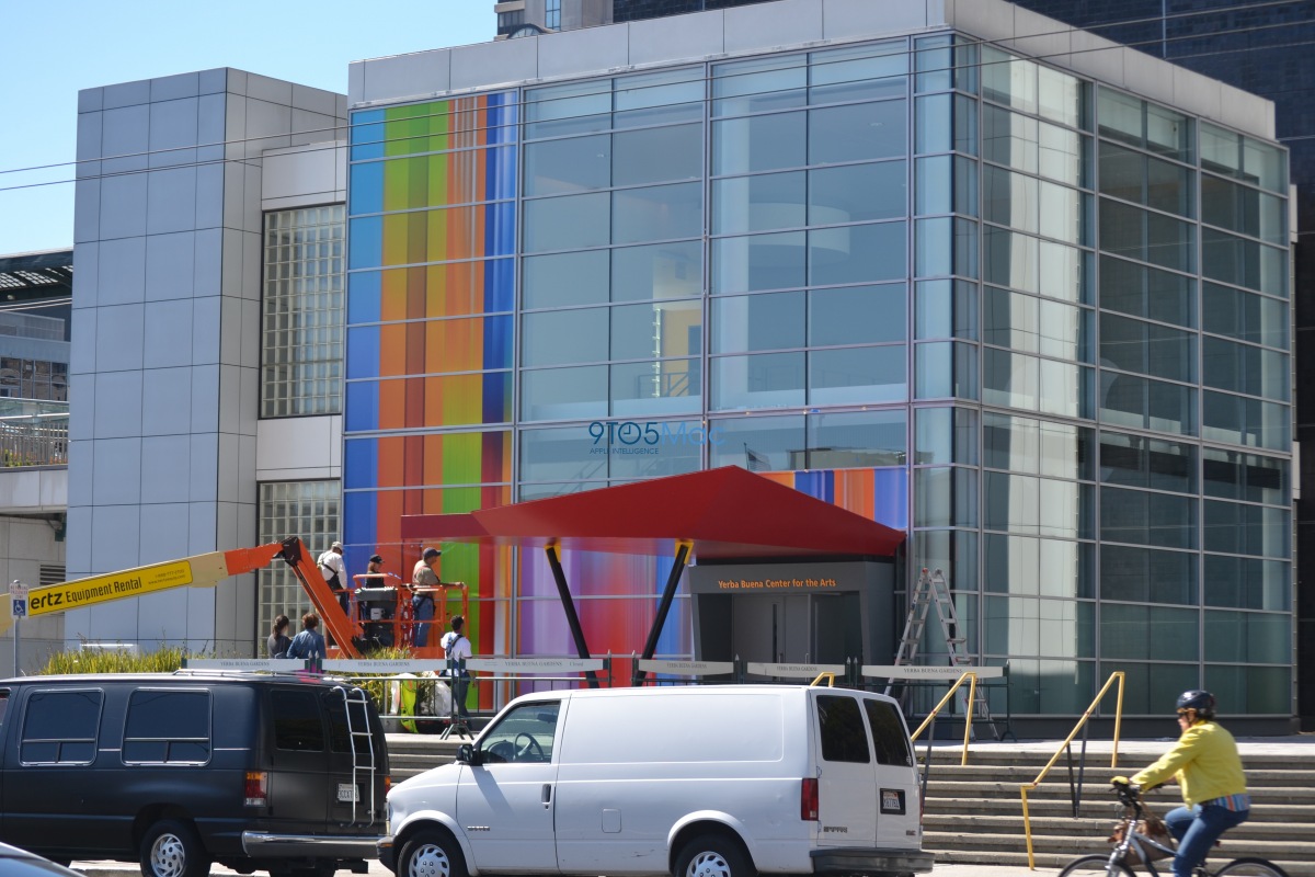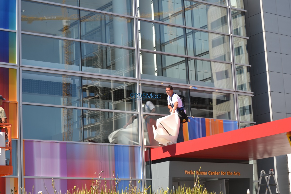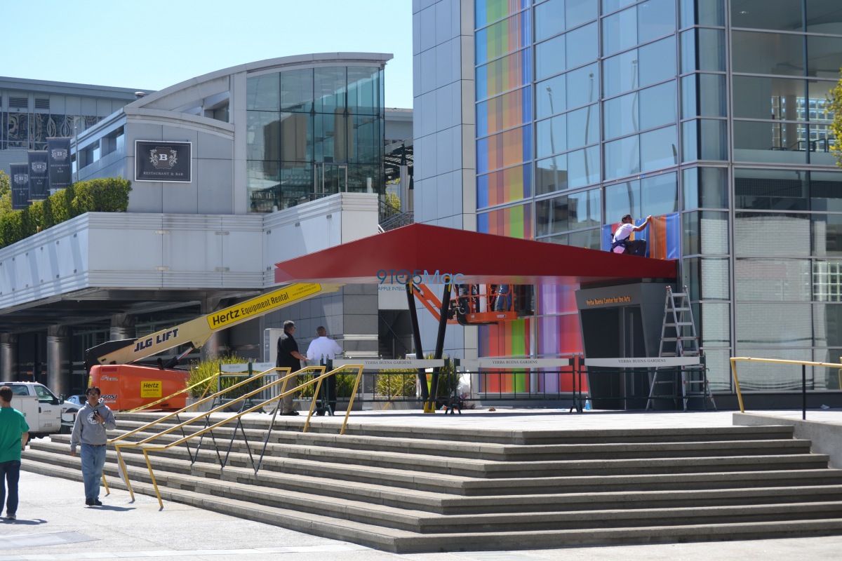 صور لتجهيزات شركة أبل للقاعة التي ستعقد بها مؤتمرها الذي ستطلق فيه هاتفها الجديد الآيفون 5 في سان فرانسيسكو