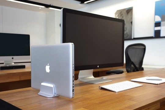 القطعة مصنوعة من الألمنيوم وتقبل الماك بوك والماك بوك برو والماك اير ، كذلك ستاند آخر يؤدي نفس المهمه ممن يريد توفير مساحة على المكتب ويقوم بتثبيت جهازه اللابتوب بشكل عمودي مع قاعده من الألمنيوم