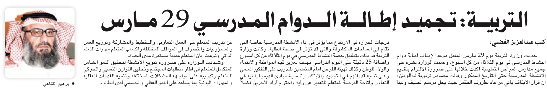 . خبرين بنفس الصورة ابراهيم القناعي يصرح عن التربية ويصرح عن الإسكان ، بتاع كله مثلا :) المفروض الخبر الأول يحطون صورة معزبة المدرسين موضيو ، والخبر الثاني يحطون الأخ ابراهيم الله يعطيه العافيه . . .