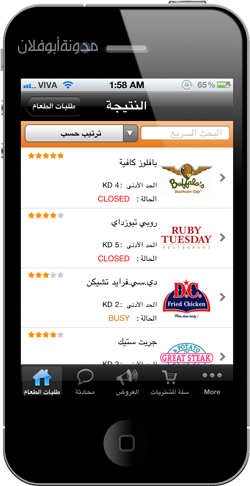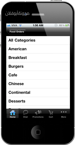 البرنامج يطلب منك تحديد الدولة ( الكويت – السعودية ) ثم اختيار المنطقة ثم المطبخ المفضل لديك ( أمريكي – ياباني – هندي – كويتي )